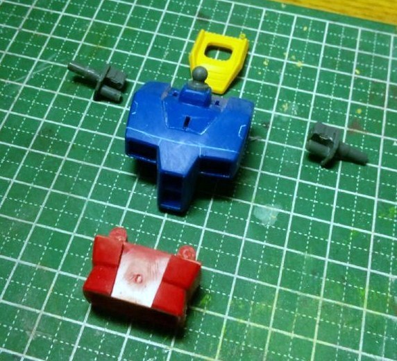 胴体は赤い部分のピンをカットして後ハメ化。胸はモールドを追加しました。