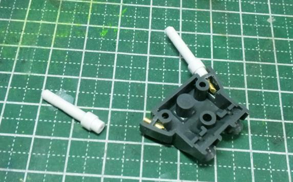 足首フレームのシリンダーパーツは、メタルカラーのブラスとクロームシルバーで塗装。