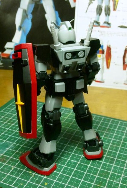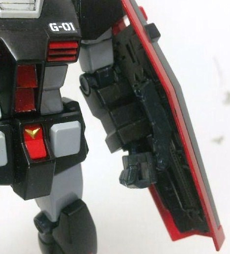 余談ですが、このあたりもホビーマガジンの2001年7月号を参考にしているものの、作例では可動戦士のガンダムに付属しているジャベリンを流用してました。