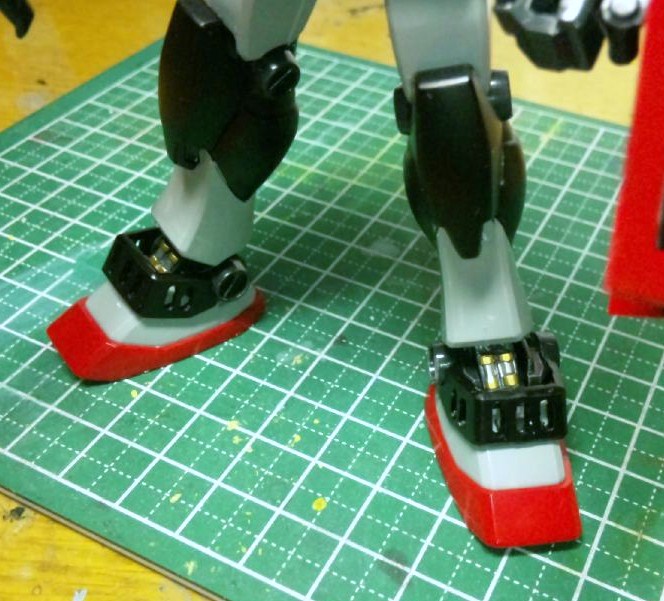 足首アーマーのスリットは接続ピンを切り落とし、スリットを開けました。