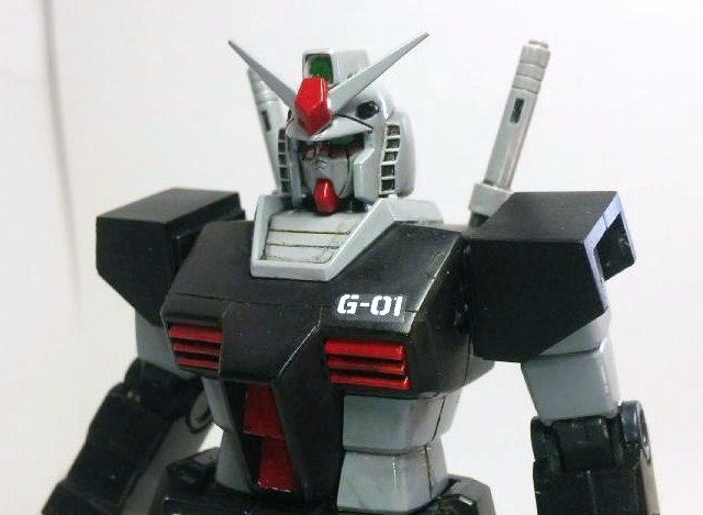 胸のG-01というデカールはプロトタイプに付属しているものを使用。頭部は顔を後ハメ加工して、首の関節と干渉しそうな部分を少し削って少しだけ可動範囲を上げました。