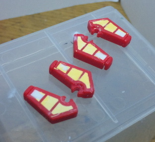 まずはノーマルなヴィクトリーからですが、頭が白いままなのは先に目を塗る必要があった(目が後頭部パーツにくっついているので)為です。その他胸や肘の赤い部分はクマドリを塗った際に余った塗料で塗った為です。
