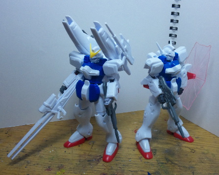 でもって今日は、ビームシールド発生器の肉抜き穴にポリパテを詰め、ベッドの下からヘキサ用にもう一つVガンダムを引っ張り出して組み上げ、改修をしてしまいました。改修内容はVガンダムと全く一緒なのでそちらを参照して下さい。
