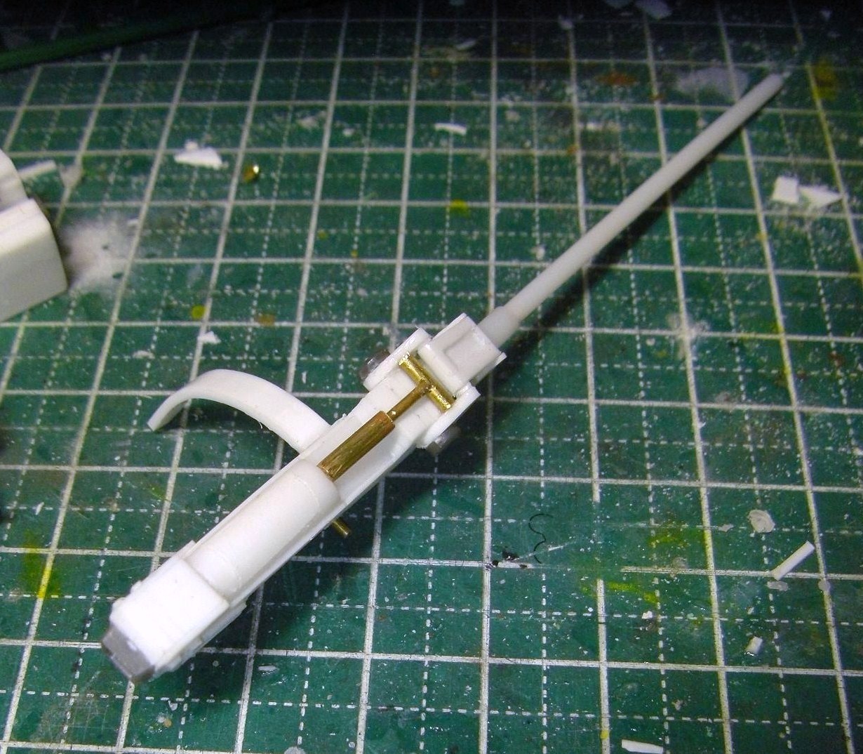 ドロッパーズフォールディングガンの展開用シリンダー(固定式)は、真鍮パイプと真鍮線で制作。もうコレの加工は終わりでいいかな?