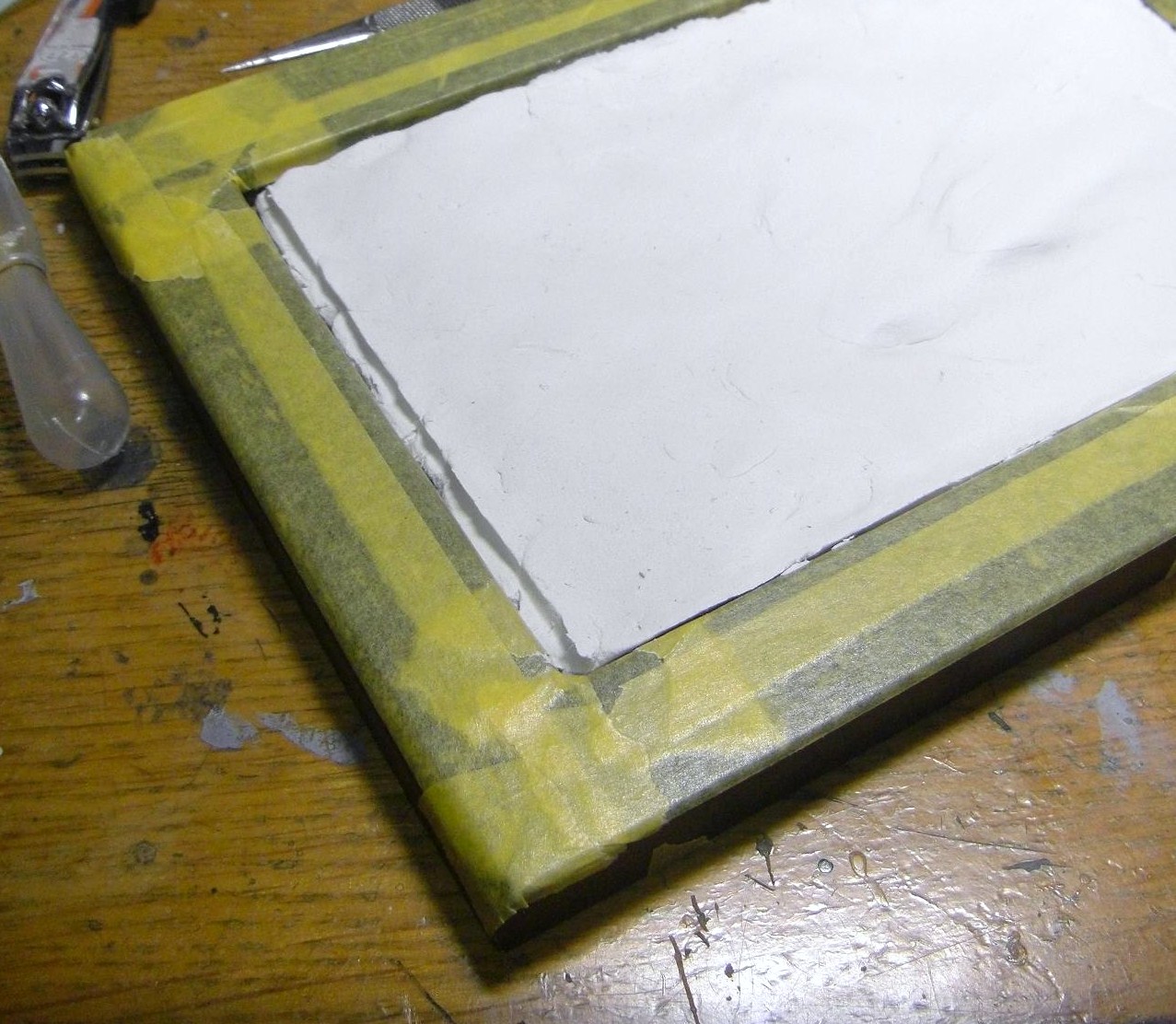 そして枠いっぱいに粘土を詰めていきます。詰める時は指でなでるよう均すと結構仕上がりが綺麗になります。