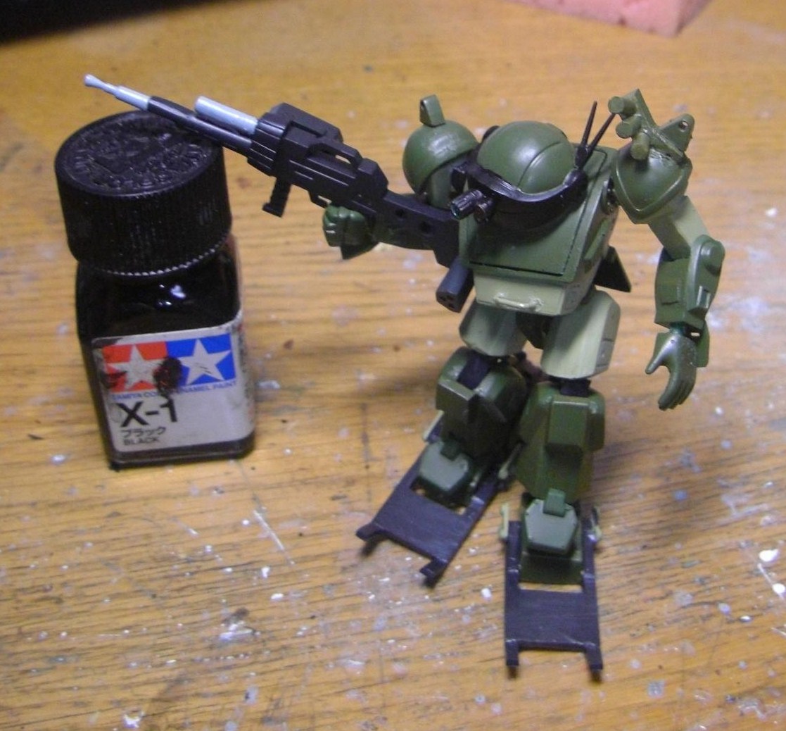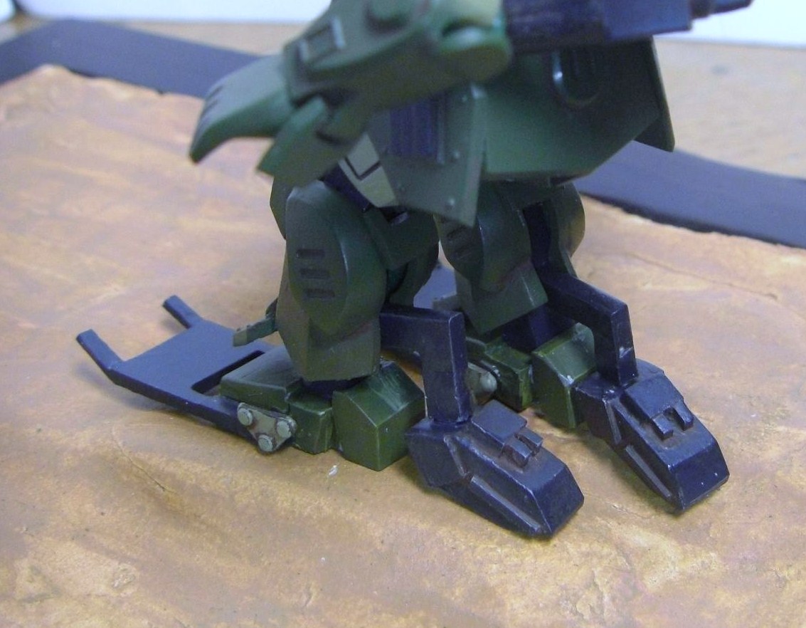 足首はスコープドッグよりも細めになっているためプラ棒で新造しており、膝から下はスネとふくらはぎの装甲だけを使いまわして後は全部スクラッチで作る羽目になりました。