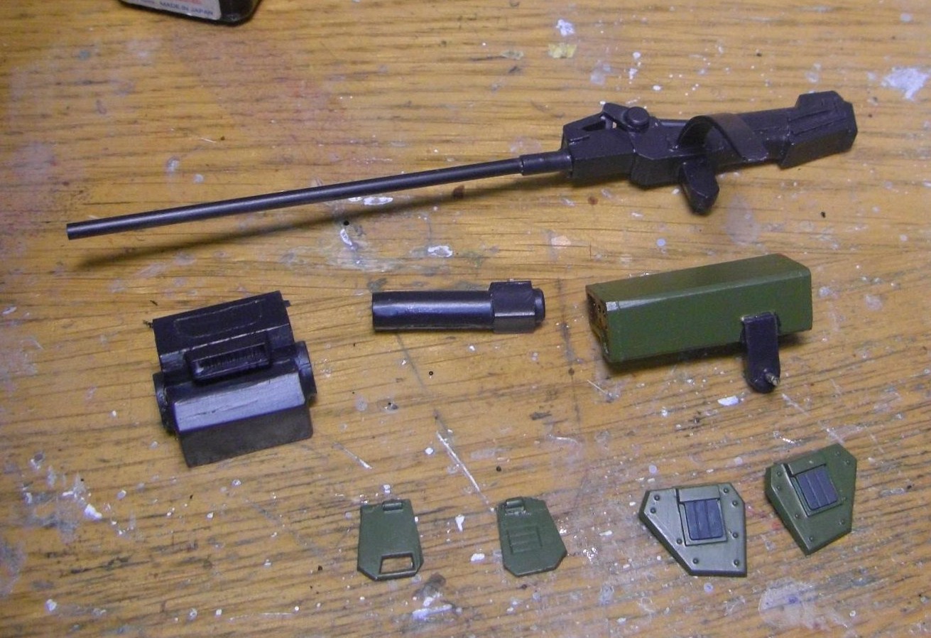 背部ザックに付く巨大な砲「ドロッパーズフォールディングガン」およびターボカスタムの物に似た7連ロケット弾ポッド。ザックも含めやっぱり全部スクラッチしました。