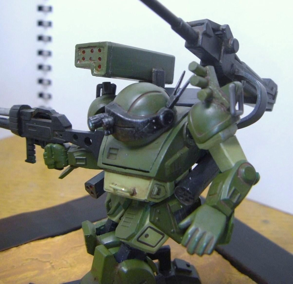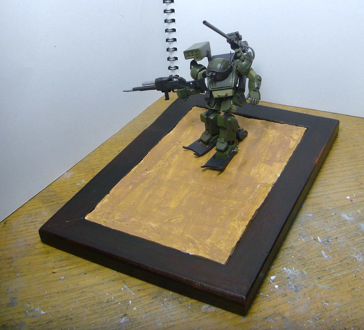 バーグラリードッグはウェーブ(元はユニオンというメーカーの製品)の1/60スコープドッグを使用しましたが、このキット異常にプラがもろく、可動モデルで仕上げ用となると結構苦労しそうです。当初は可動式にするつもりでしたが、今思えば相当無謀な事をしようとしてましたね(汗