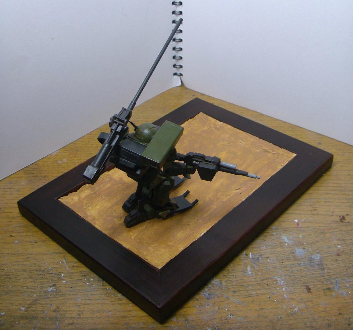 でっかい武装がてんこ盛りという事もあり、小さいながらもボリュームは結構なものとなっています。ただ、そのおかげで重量バランスが崩れているので、今回はスタンドを兼ねたジオラマを制作しました。