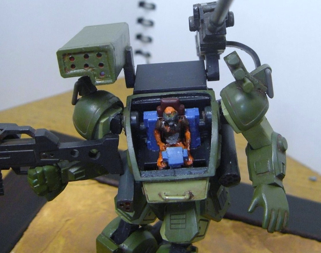 元キットでは胸部ハッチの開閉は接着する形をとっていたのですが、今回はプラの弾力を利用して取り外し式とし、中のコクピット(&パイロット)も作りました。