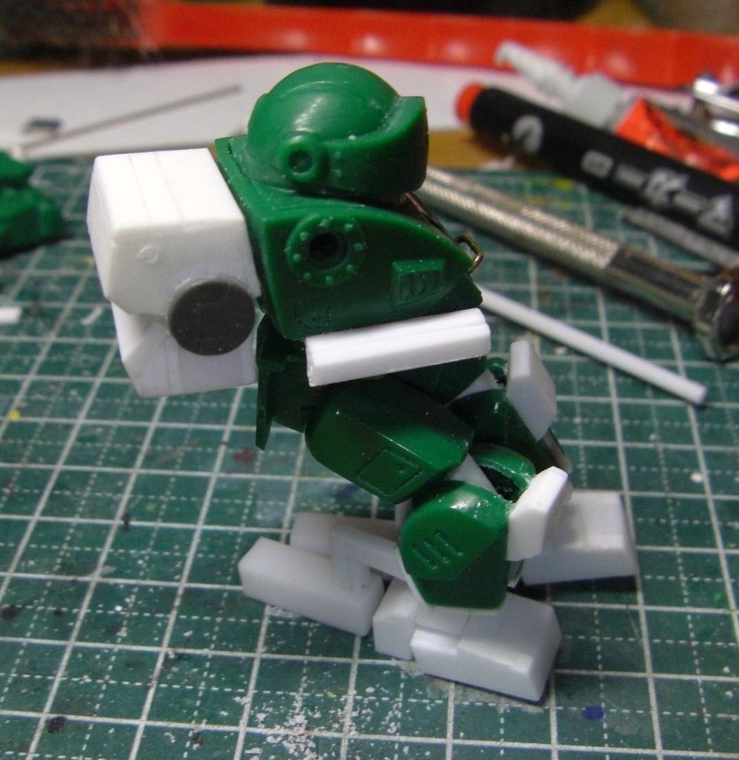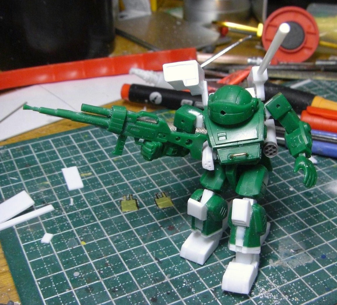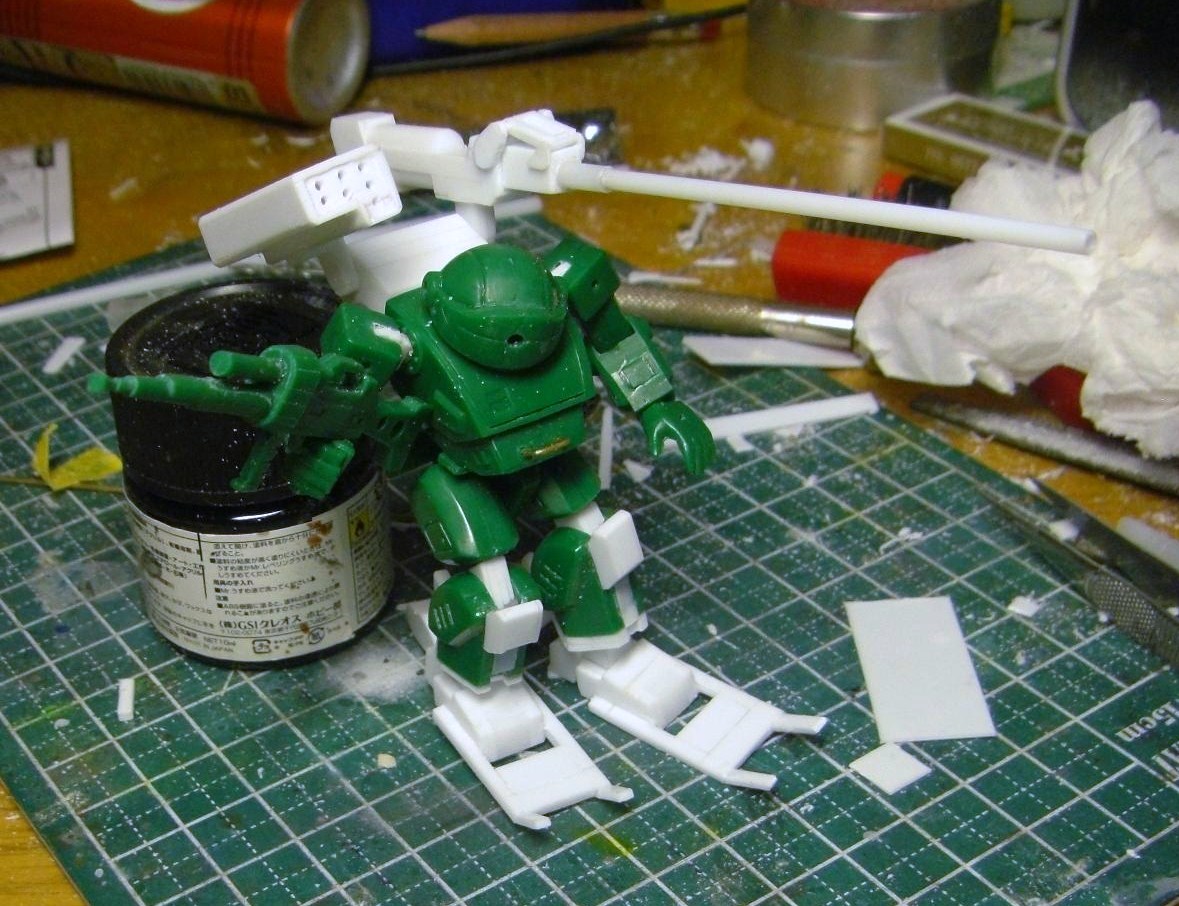 腰のミサイルポッドは元の物より小型に制作。作ってるうちにニードルガン的なものを思い浮かべるようになりました(笑)