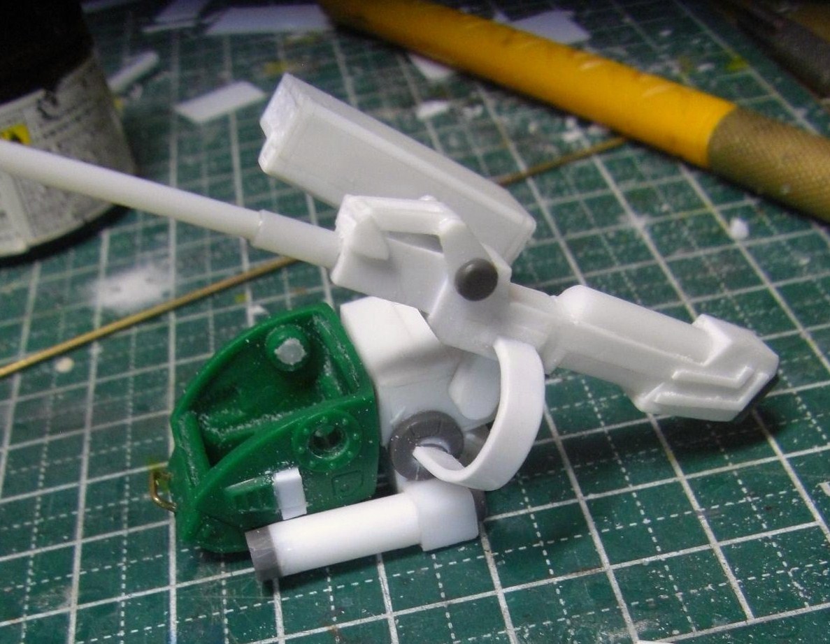 一応元は中折れ式(「フォールディング」ガンですもんね)と言う事もあり、真ん中には展開用のアーム(無論固定している)があるのですが、今回これを作るのだけが一番面倒でした・・・(笑)