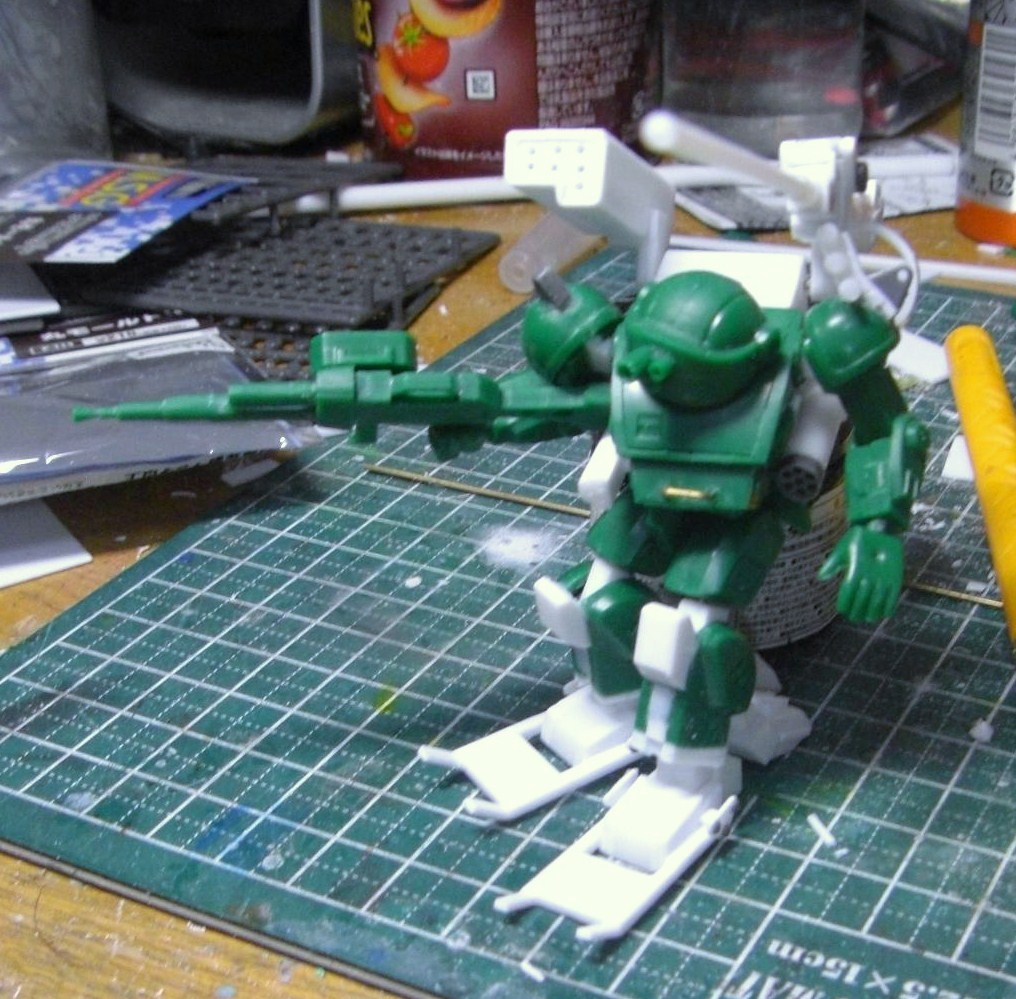 足にはようやくソリを付けましたが、結構横幅取りそう・・・まだ少しパーツ付けるんですけど大丈夫かなぁ(汗