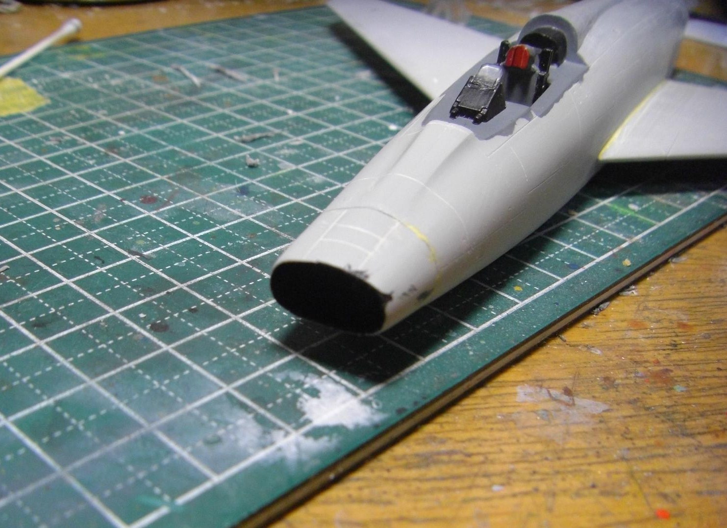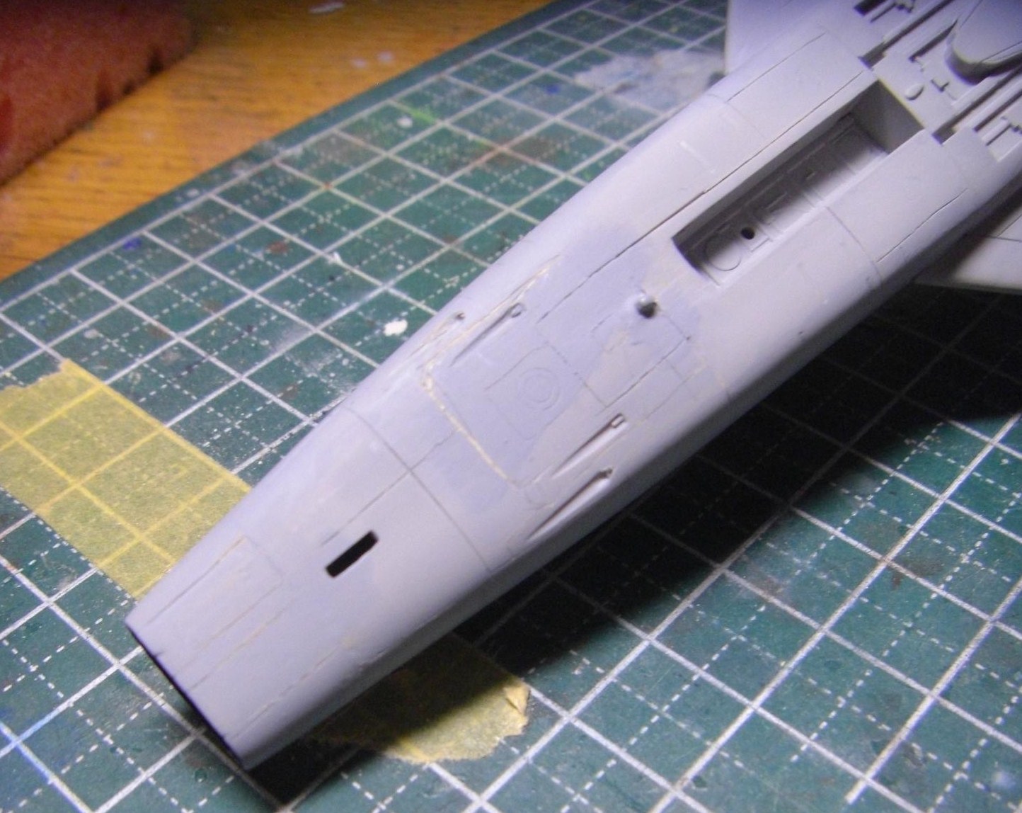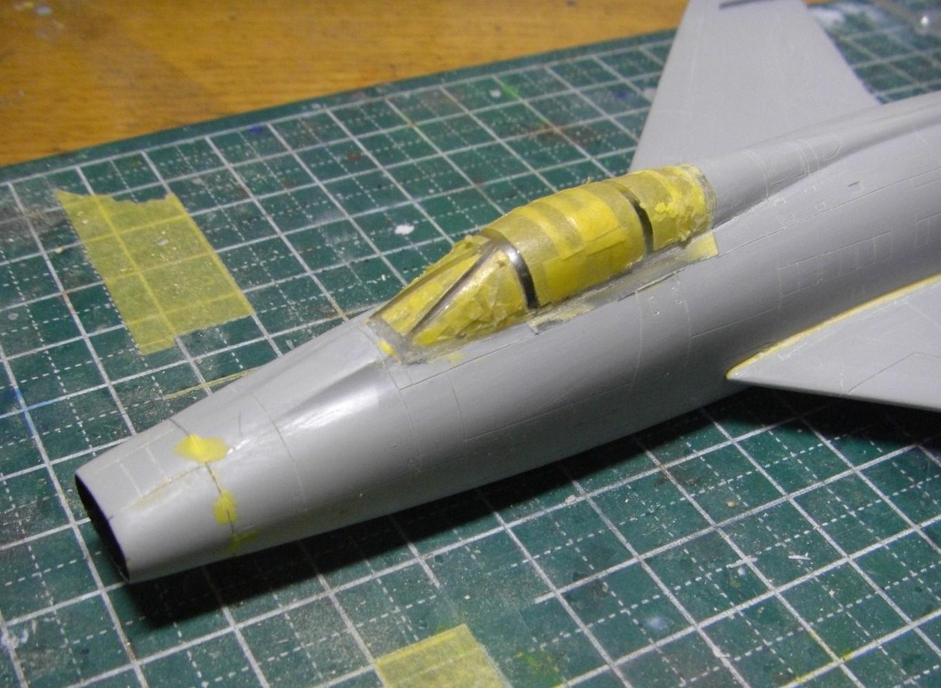 やはりキャノピーの後半部はかなり隙間というか段差というか、どっちみちぴったり滑らかにとは行かないので、かなりパテが残っています。