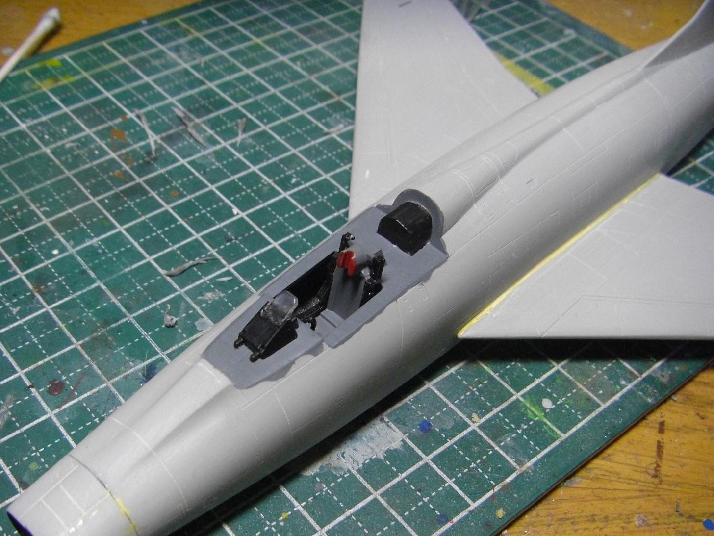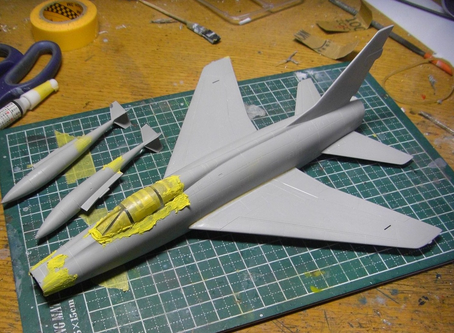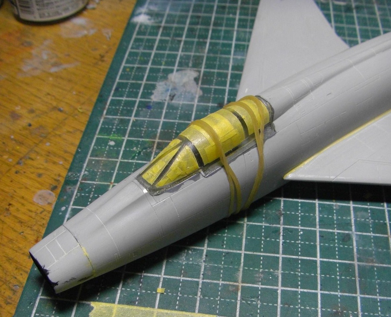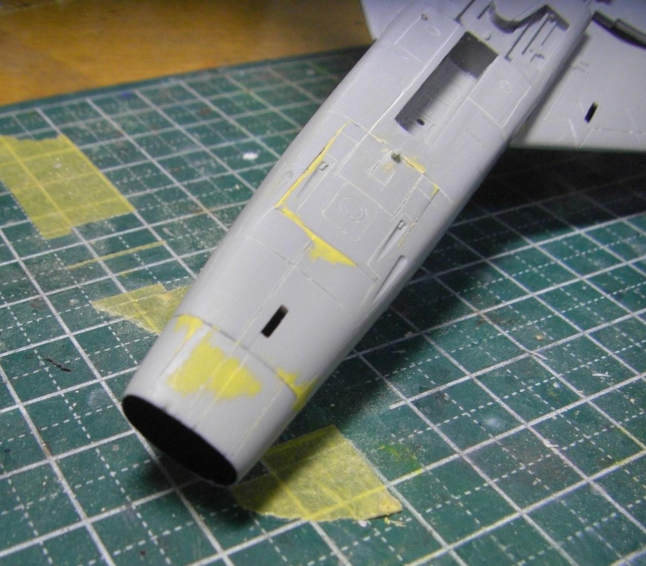 やはりキャノピーの後半部はかなり隙間というか段差というか、どっちみちぴったり滑らかにとは行かないので、かなりパテが残っています。