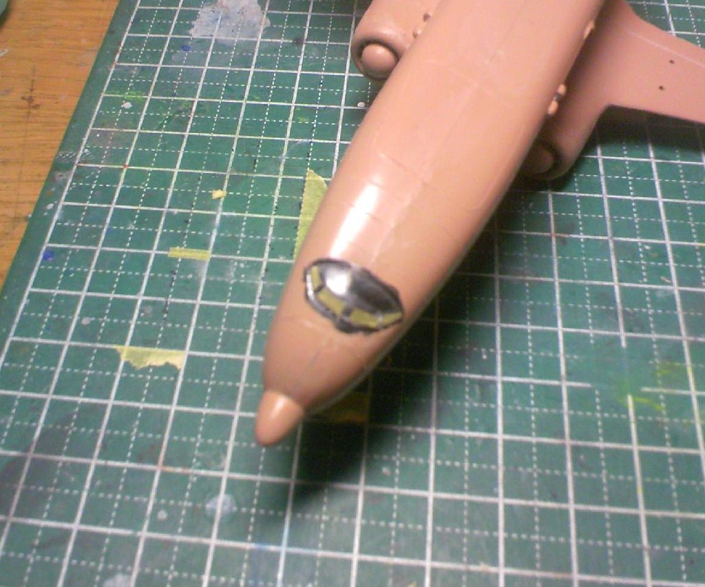 クリアパーツになっている機首のFLIR(前方監視赤外線装置)は、マスキングした後で貼りつけました。裏は黒く塗ってあります。