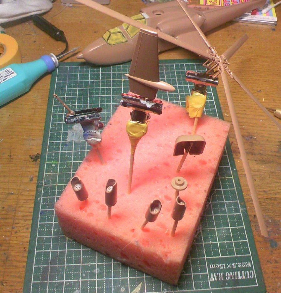 じゃあ、次はキャノピー貼ってローターにパテ埋めて・・・そろそろしっかりと形にしてしまいます。