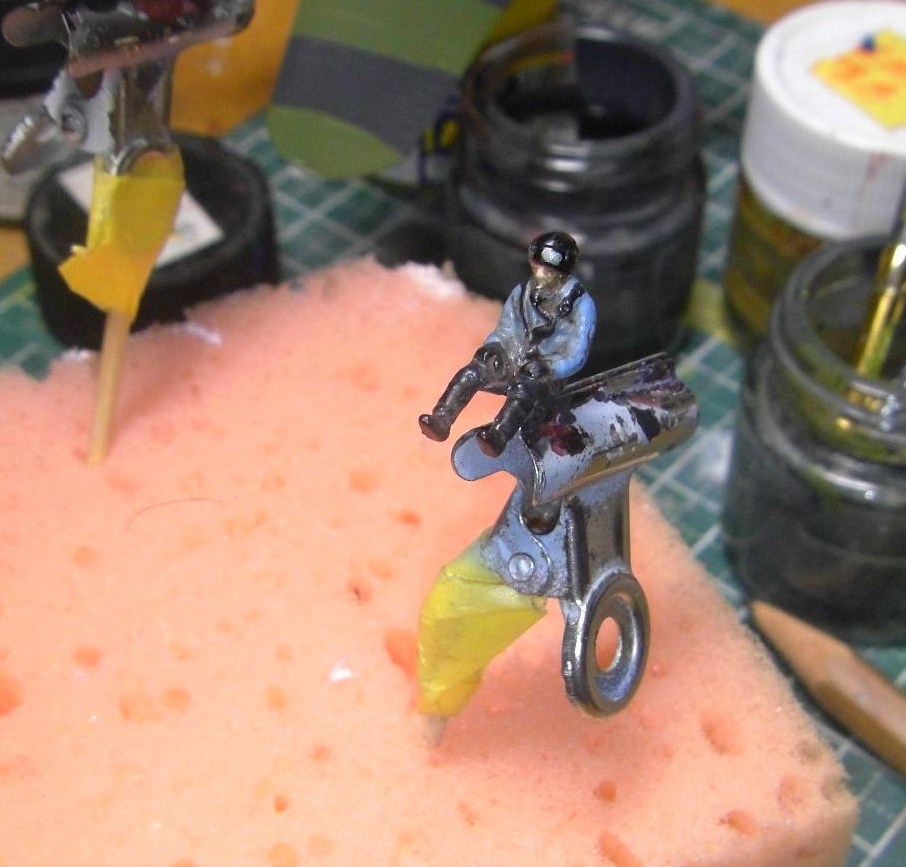 あと、あの水色の服を着た状態のパイロット写真が見付かったので、イッルもついでに塗りなおしてしまいました。コレはミディアムブルーをベースにグレーバイオレットを少し足した色としています。