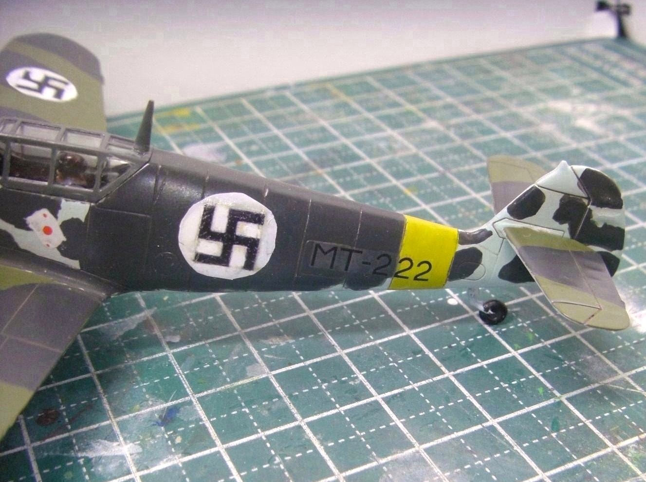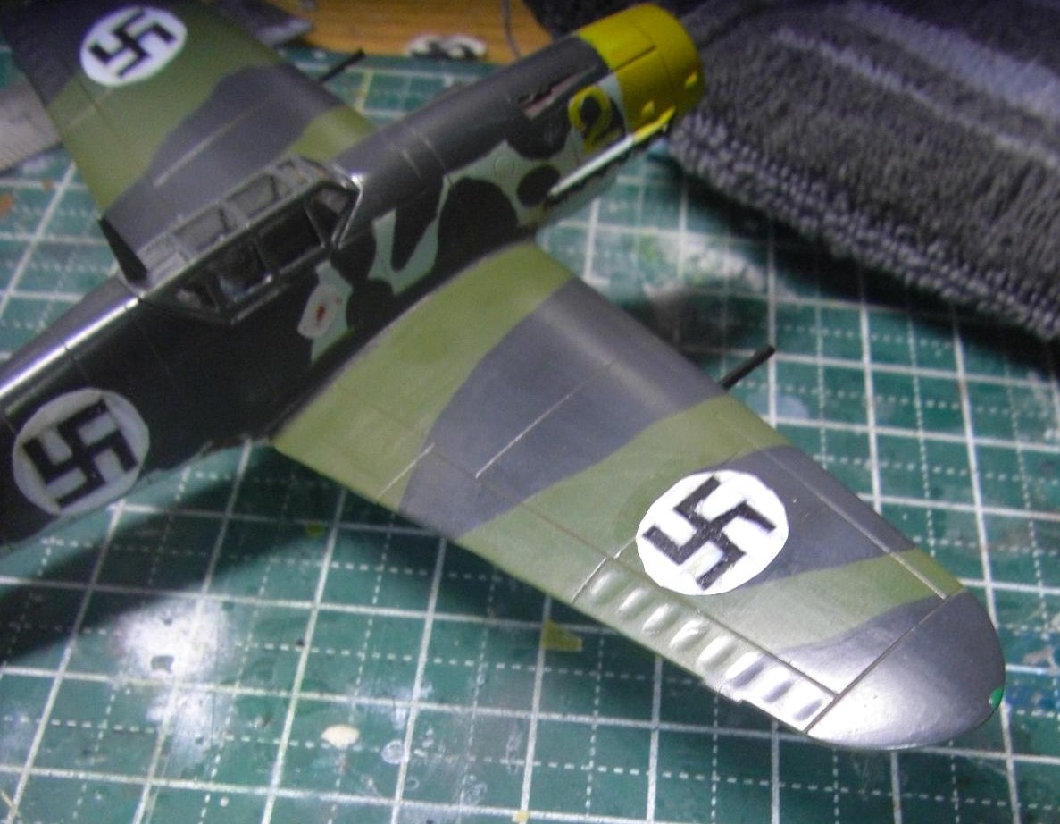 そのあと胴体と主翼の一部に確かグレーグリーンとブラックを混ぜた、ネービーブルーによく似た色で迷彩の特に面積の大きい部分を塗りました。斑点は次回に持ち越しだぜぇ~!