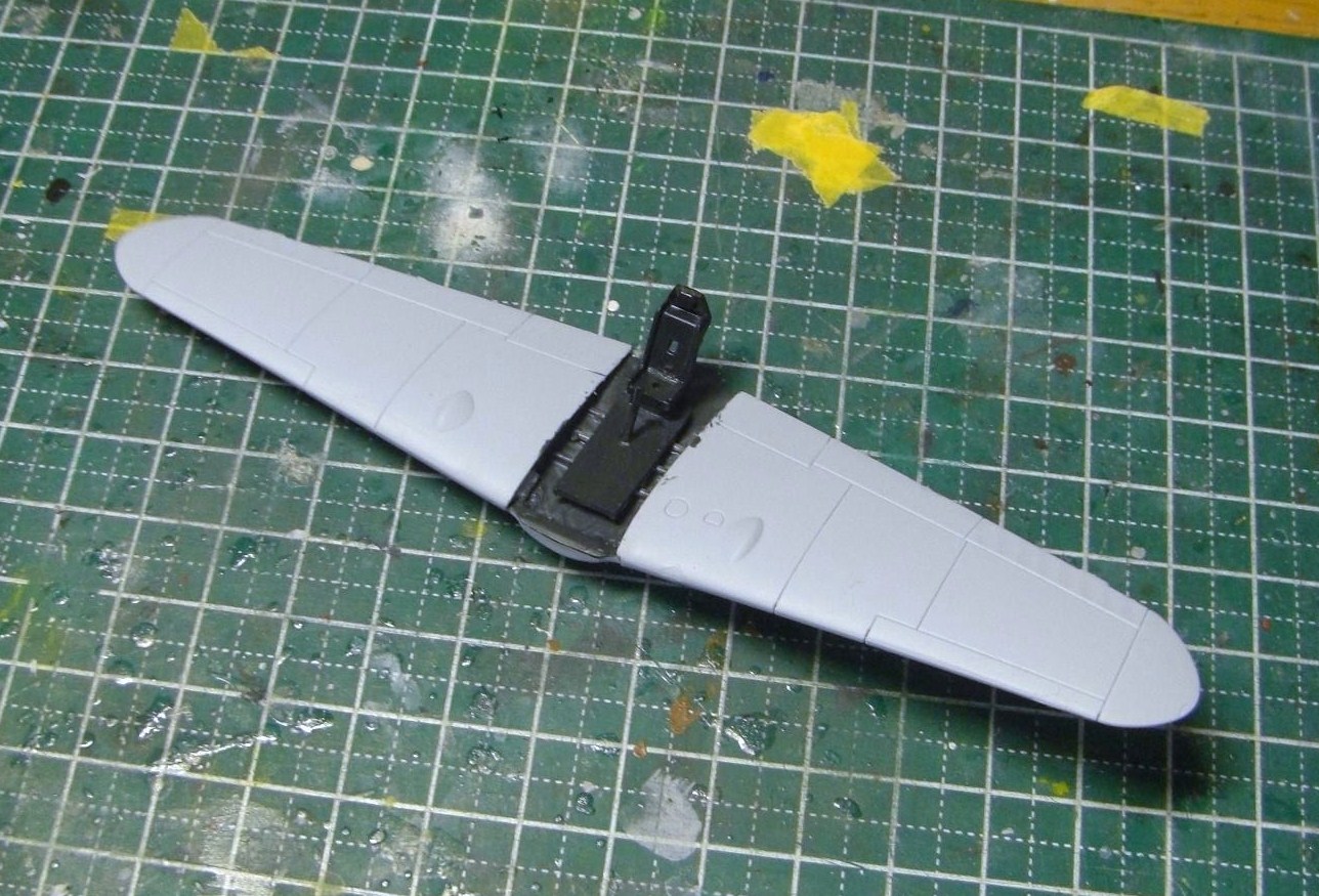 次にやるのは翼と胴体をくっつけて、隙間にパテを詰める作業かなぁ。
