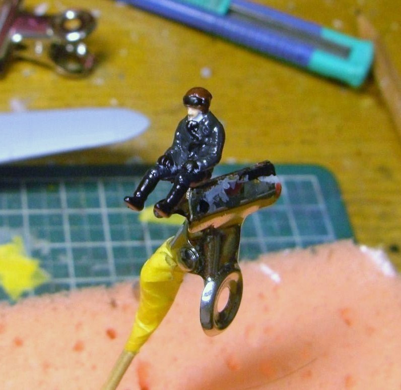 パイロットはコクピットが狭いので後から乗せられず、先に乗せてから接着しています。