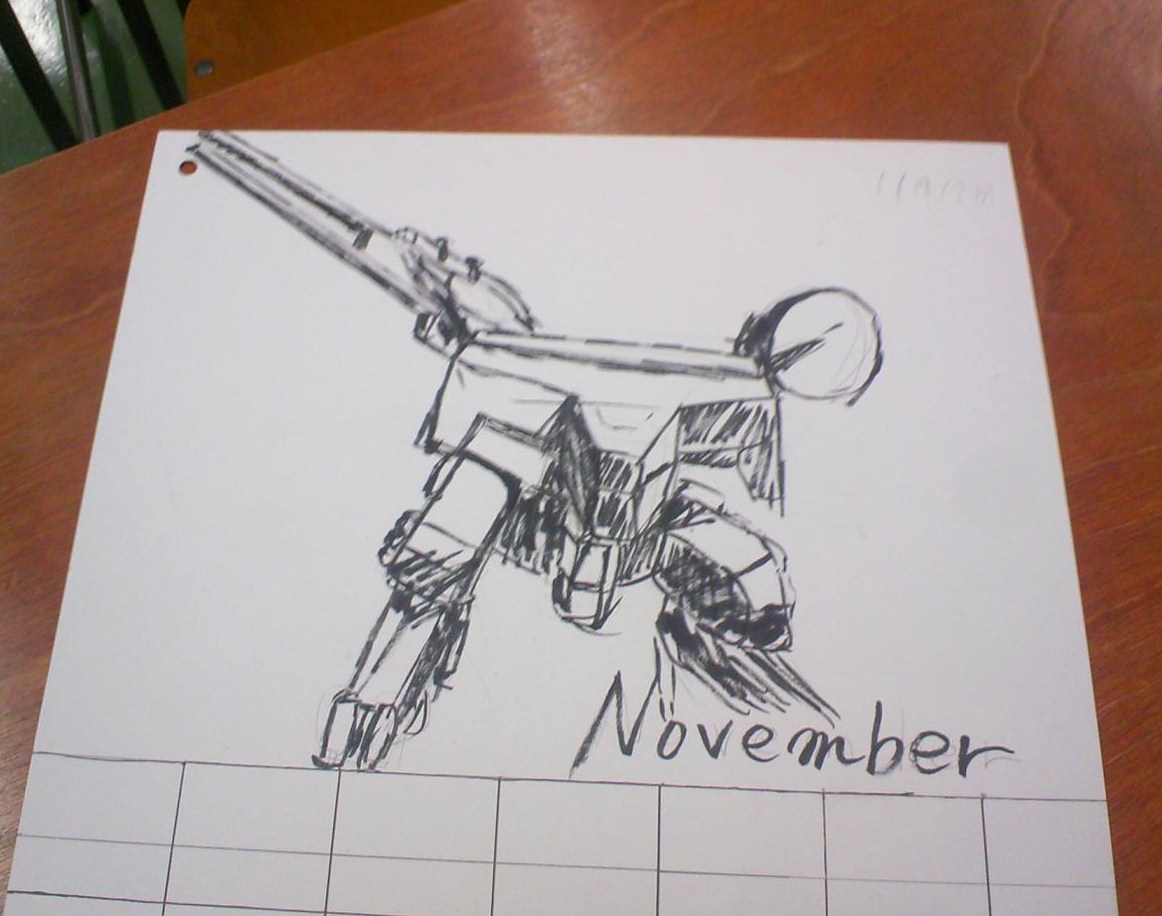 あと、部活でカレンダーを作る事になり、自分とは全く縁のない11月を担当する事になったのですが、特に良いアイデアが浮かばなかったため、結局頭にパッと浮かんだメタルギアREXを描いてみる事に。