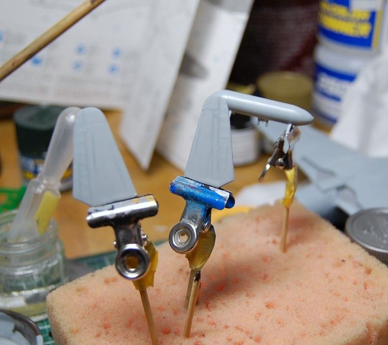 水平尾翼、増槽なども明灰白色で塗装。そういやいつの間に増槽なんて作ったんだっけ・・・