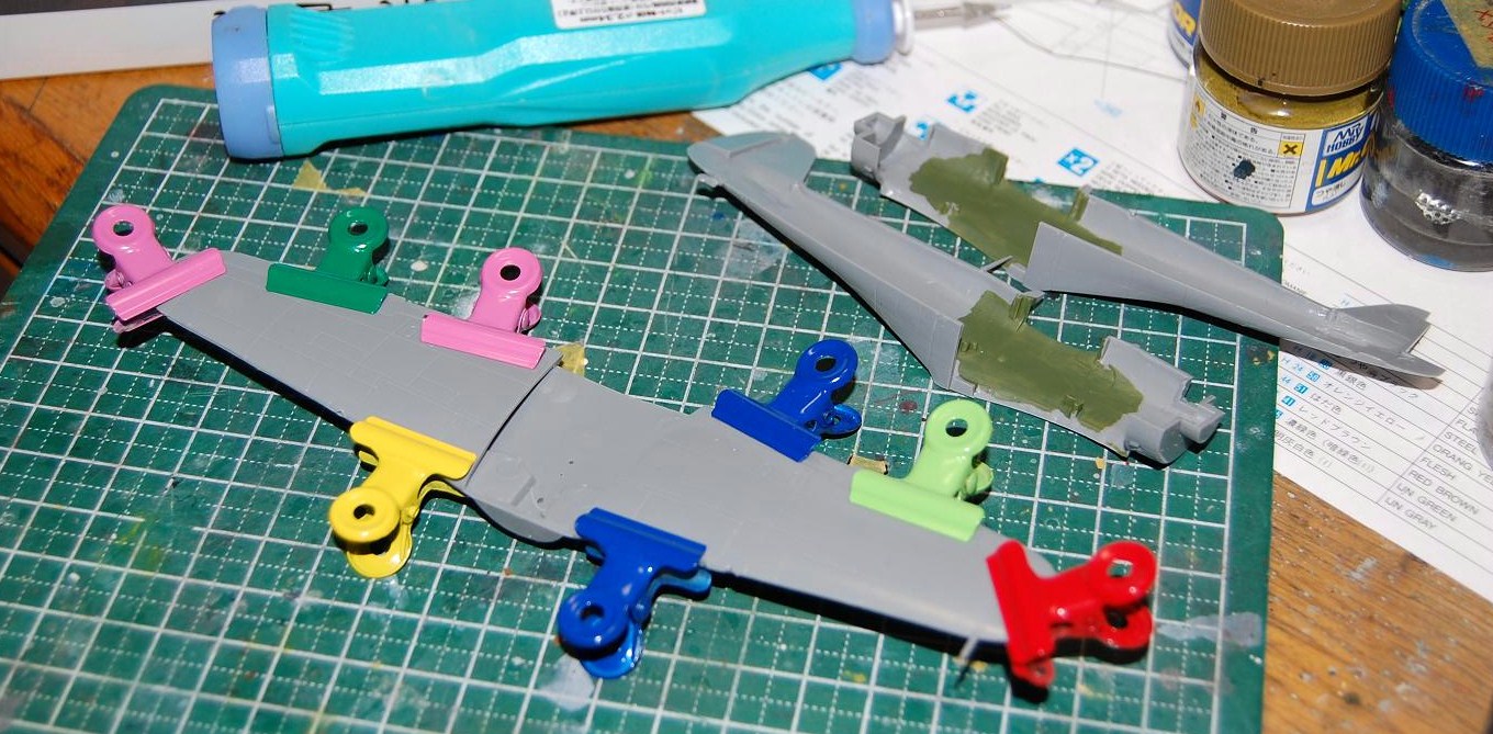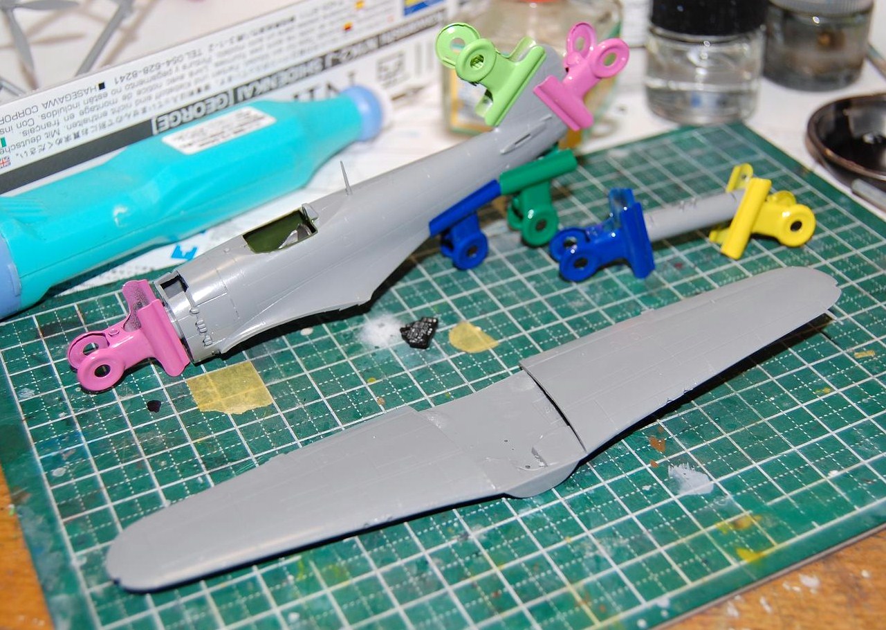 次は合わせ目をヤスリがけし、そして内装品を組みこみ・・・結構すぐ完成しそうな予感が。色々古かったスピットファイアの時と比べて条件は良いので、その分は結構短縮できそうです。
