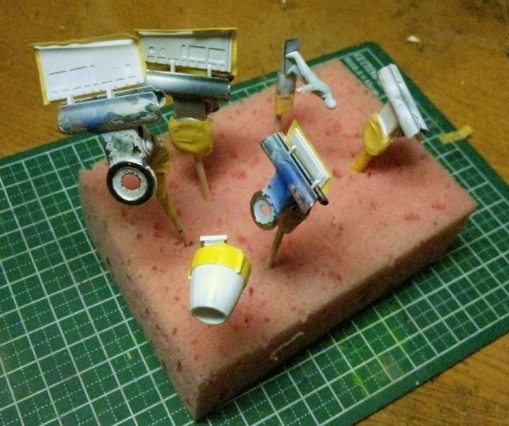 他のパーツもホワイトを吹いてから、必要な部分をマスキング。