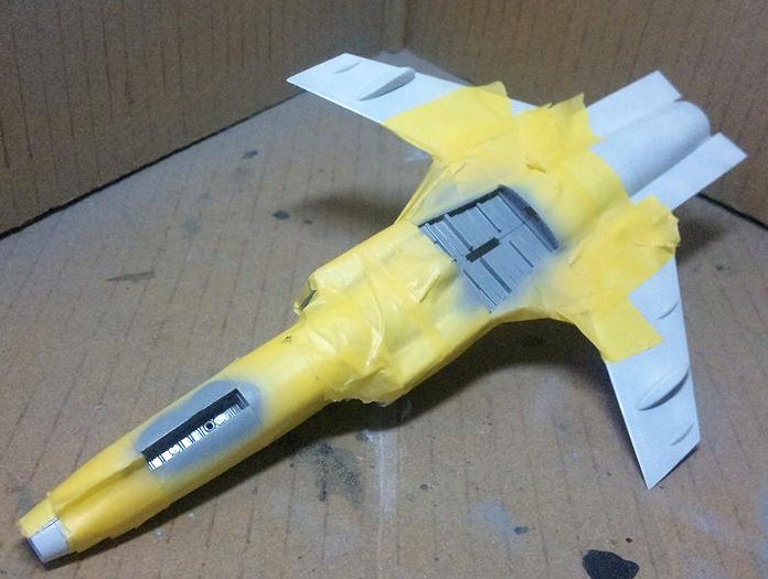 昨晩ネットでX-29の画像を漁っていた際、キャノピー後部は実は真っ白く塗られている事に気づいたので、今日早速塗り直しました。