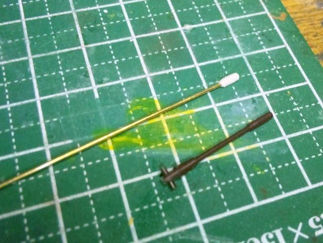 細くて折れそうだったピンは、0.7ミリの真鍮線の先に軽くティッシュを巻いて製作。