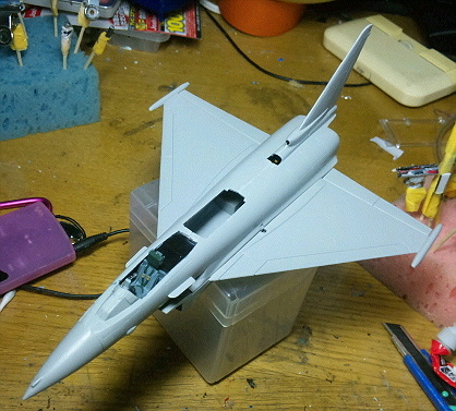 とりあえずタイフーンはコクピットの塗装と組み立てと胴体の合わせ目を消す作業の途中。翼は合わせ目が出ない構造なのでそのまま接着しました。