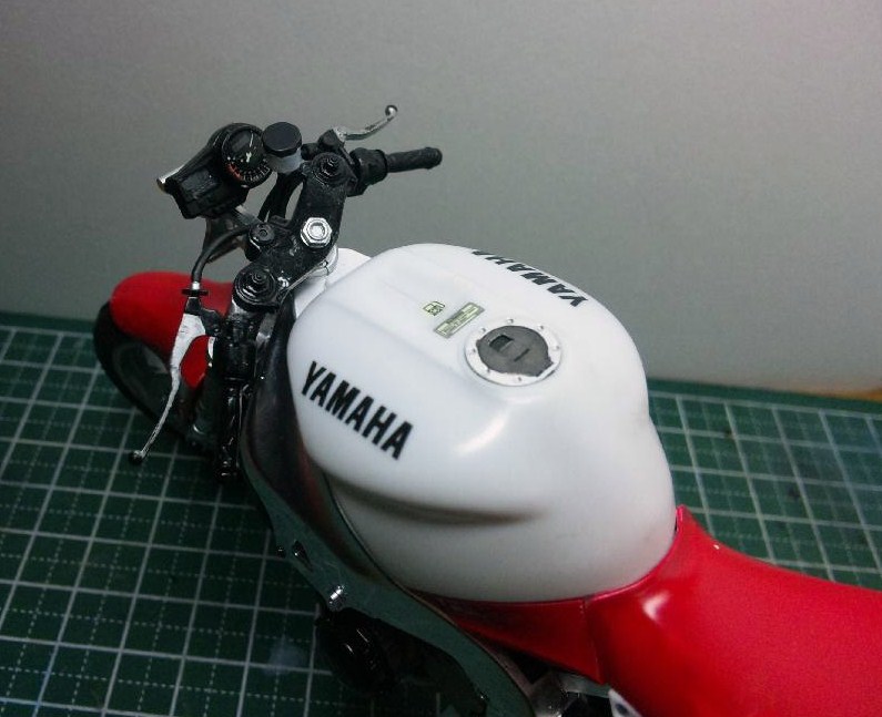タンクやハンドル周り。メーターのデカール張りが中々厄介でした。