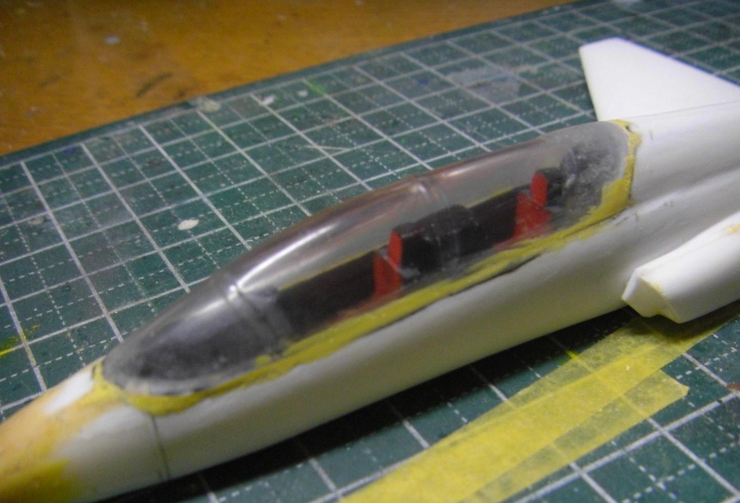 で、内装をセミグロスブラックで塗ってから、キャノピーを貼り付けます。
