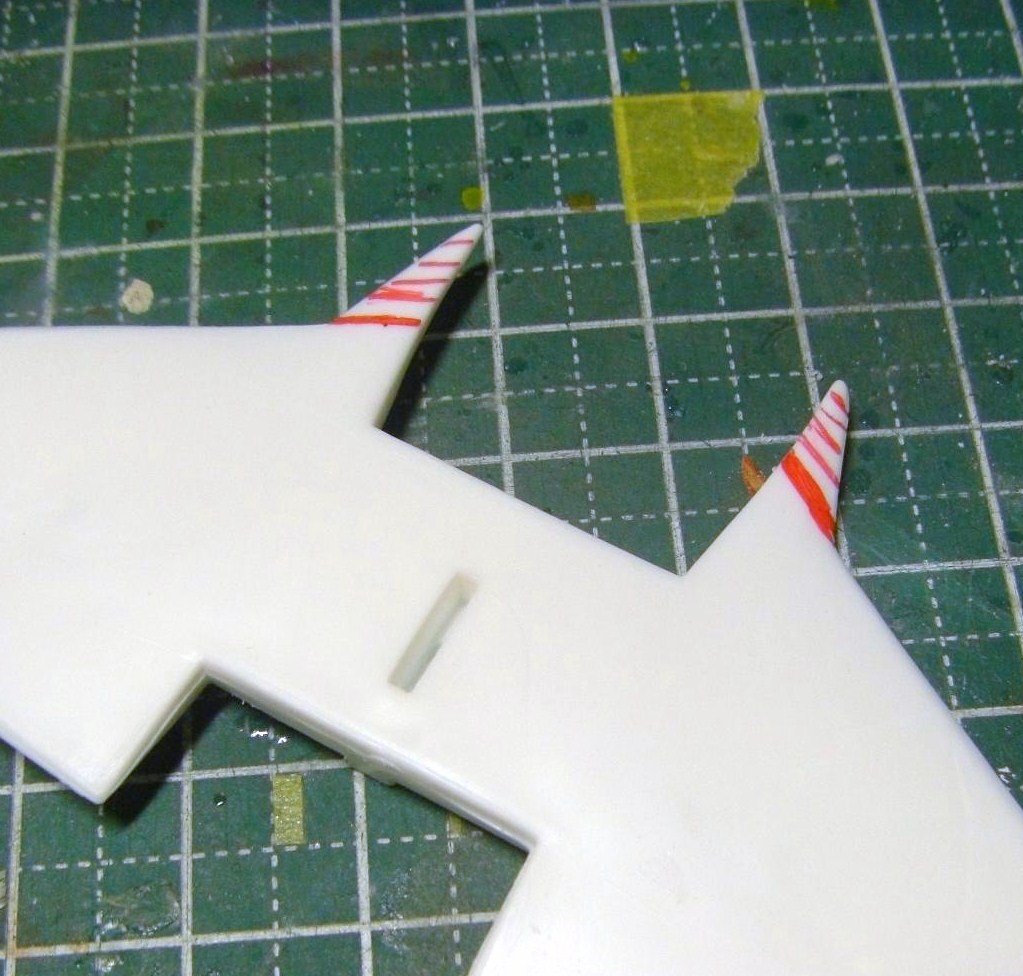 まずはストレーキが邪魔なため、赤い印を入れた部分を切り落とします。