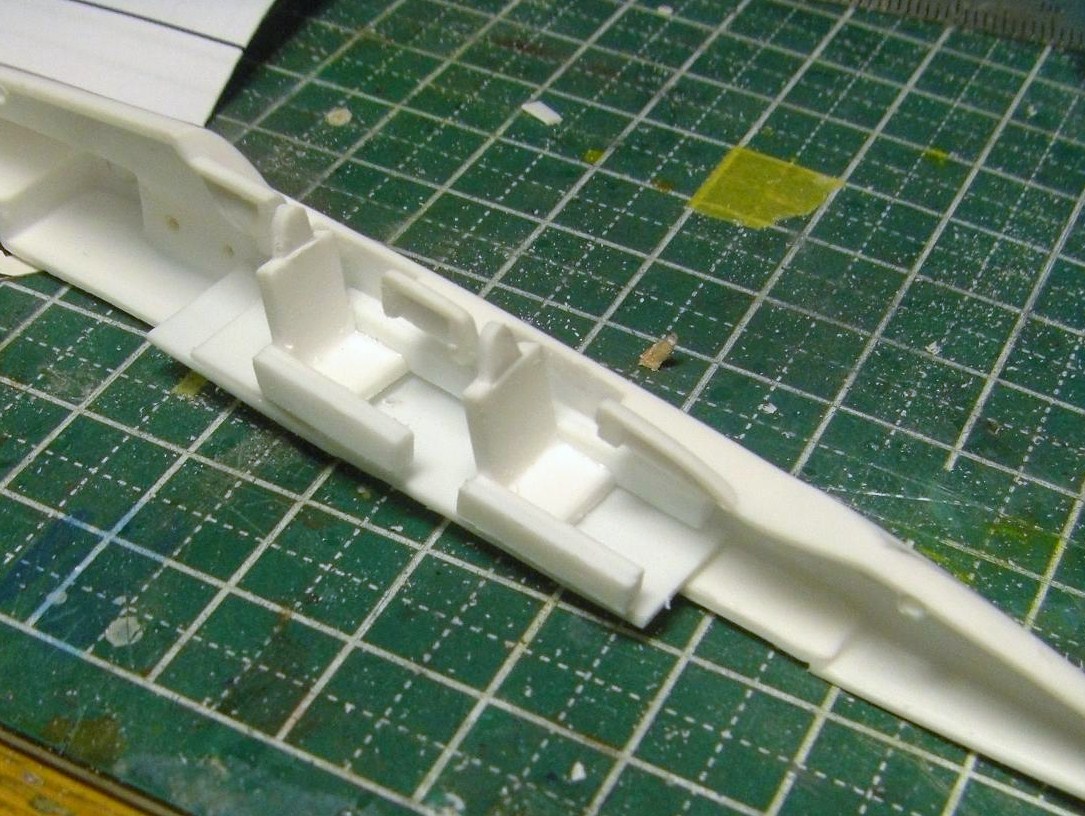 あと、スッカスカのコクピットは、プラ板で床と申し訳程度のサイドコンソールを作りました。