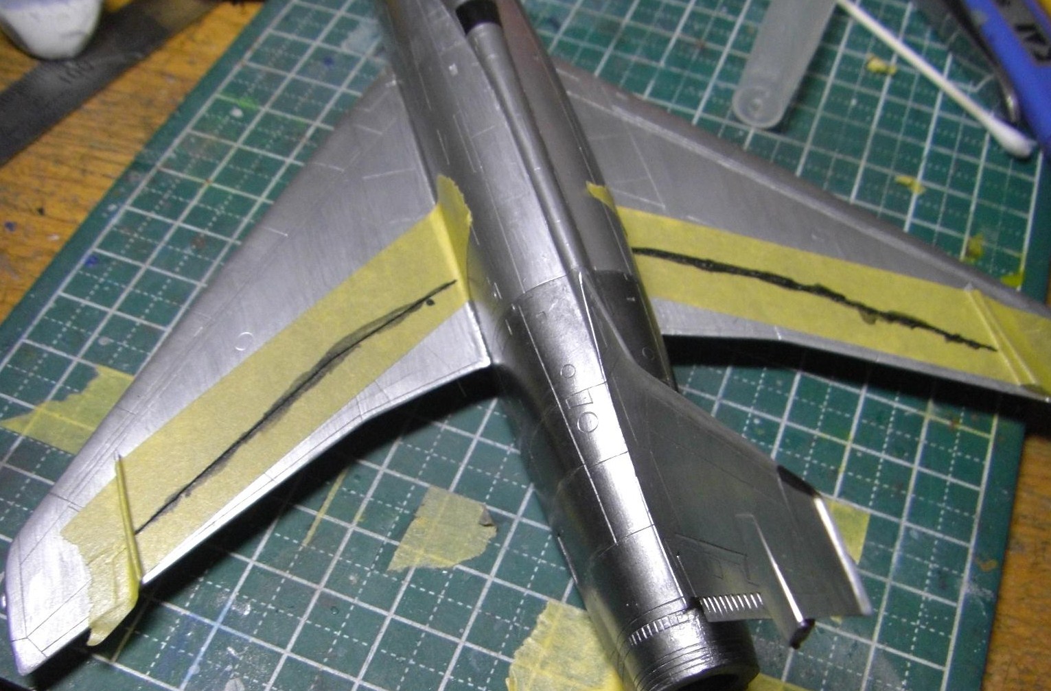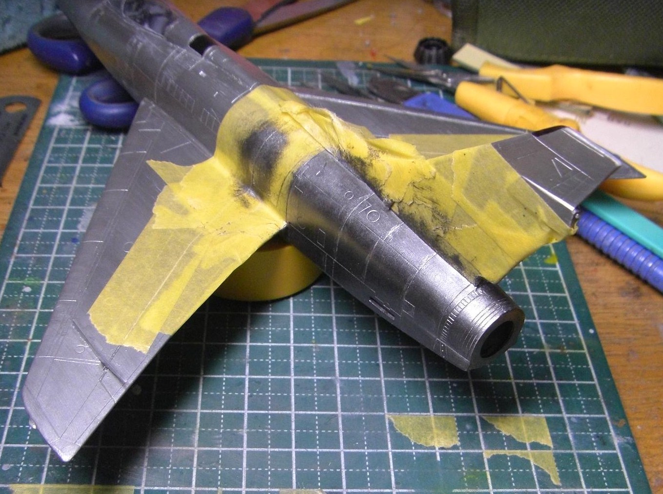 最後に色の異なるエンジン周りをマスキングして、今日はおしまいになります。